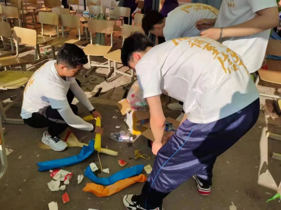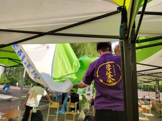运动会闭幕后,金融学院学生干部们恪尽职守,把帐篷收拾整齐,把桌椅搬回原位,尽职尽责,做好自己的每一份工作。