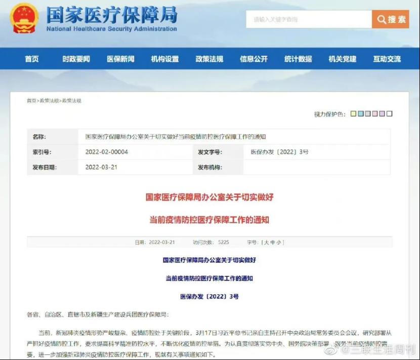 通知明确,支持疫情严重地区医疗机构正常运转,必要时可按程序预付部分新冠救治资金。同时,要扎实做好新冠病毒疫苗及接种费用保障,落实核酸和抗原检测项目价格政策,实施“长期处方”、互联网诊疗等结算报销政策。