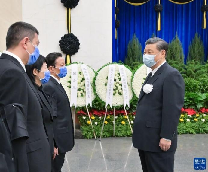 上午9时40分许,习近平、栗战书、汪洋等,在哀乐声中缓步来到何鲁丽同志的遗体前肃立默哀,向何鲁丽同志的遗体三鞠躬,并向何鲁丽同志亲属表示深切慰问。