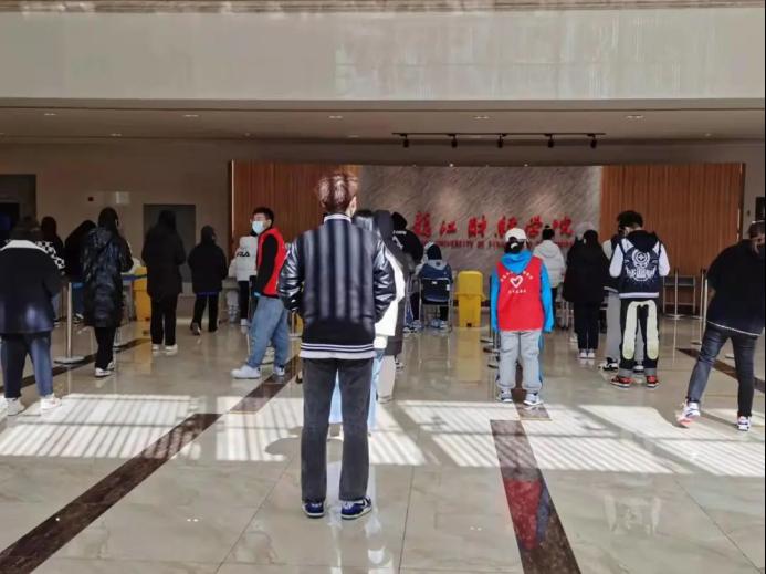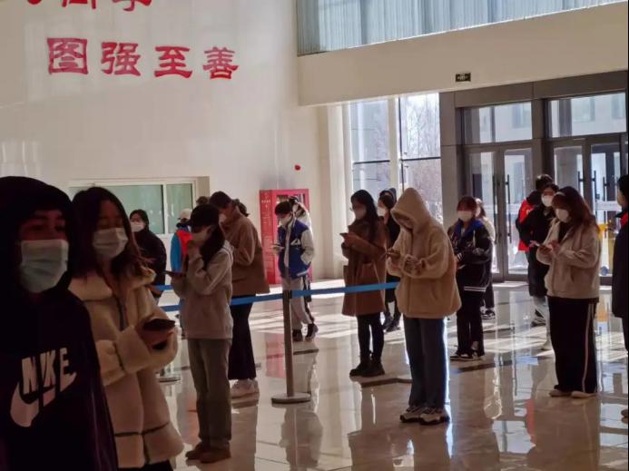 全校师生闻令而动,听令而行,第一时间集结好检测队伍。大家在志愿者的组织下井然有序的进行核酸检测。