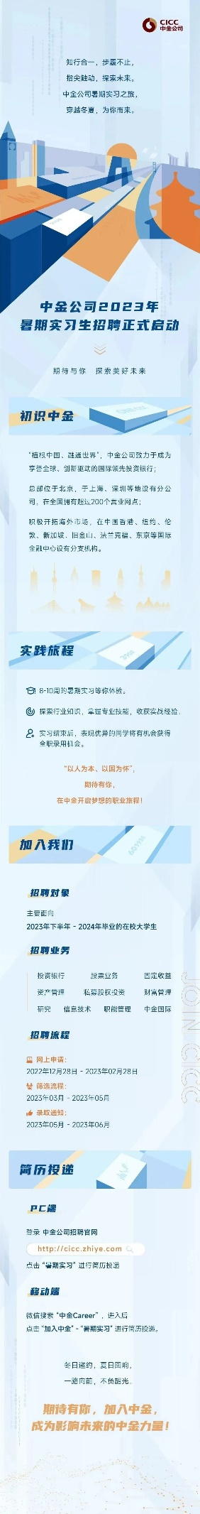 【聚焦优岗】第十七期 中金公司2023年暑期实习招聘正式启动