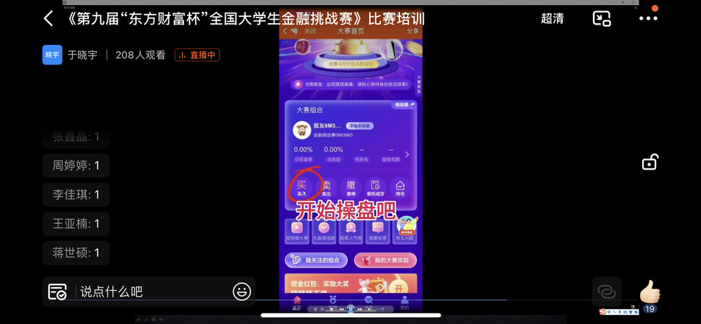 金融学院院长郭强在直播中表示:希望同学们能够在比赛中都能有所收获,希望大家在这个过程中培养投资意识,体验投资乐趣。