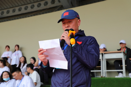 庄严的升旗仪式后,副校长庹莉致开幕词。她代表学校领导班子、运动会组委会向大会的胜利召开表示热烈的祝贺,向全体裁判员、教练员、运动员致表示亲切问候,向积极参与大会筹备工作的老师同学们表示衷心的感谢。她指出,体育精神是实现中华民族伟大复兴的内在动力,是永不枯竭的精神力量。学校坚持以学生成长发展为中心,统筹推进五育并举育人体系建设,打造击剑、礼射、飞镖、拳击等特色体育课程项目,举办校园体育文化节等系列校园体育活动,鼓励广大师生参加各级各类体育赛事,并取得了优异成绩,充分展现了龙财师生的良好精神风貌。她表示,校园体育运动是培养德、智、体、美、劳全面发展一代新人的重要途径。要弘扬“忠诚、敬业、合作、卓越”的龙财精神和“乐观、宽容、理智、激情”的人文情怀,大力倡导“更快、更高、更强”的奥林匹克精神,推动学校体育运动的蓬勃发展。希望全体运动员以“友谊第一、比赛第二”为原则,尊重裁判,遵守竞赛规则;要严守大会纪律和安全规定,保持文明观众,做文明运动员;要发扬不怕苦、不怕累、敢于拼搏和不断进取的精神;要弘扬“更快、更高、更强”的奥运精神,赛出风格、赛出水平。