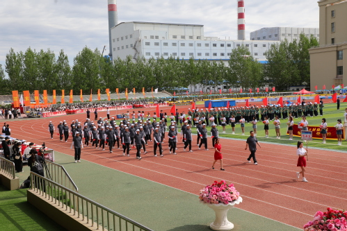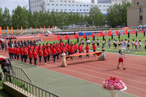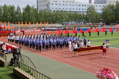 伴随着激昂的远动员进行曲,国旗、校旗、会旗、花束队、刀旗队、裁判员队伍、各代表队队伍迈着矫健的步伐,喊着嘹亮的口号,依次步入会场,充分展示了我校师生员工良好的精神风貌。