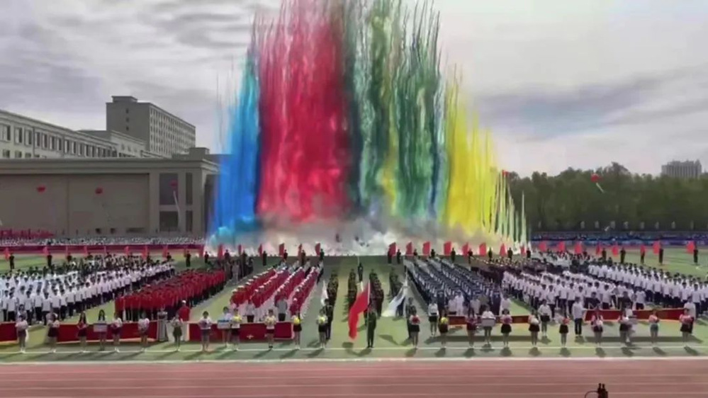 百余名金融学子随着音乐动作整齐划一、气势磅礴彰显了青春风貌。