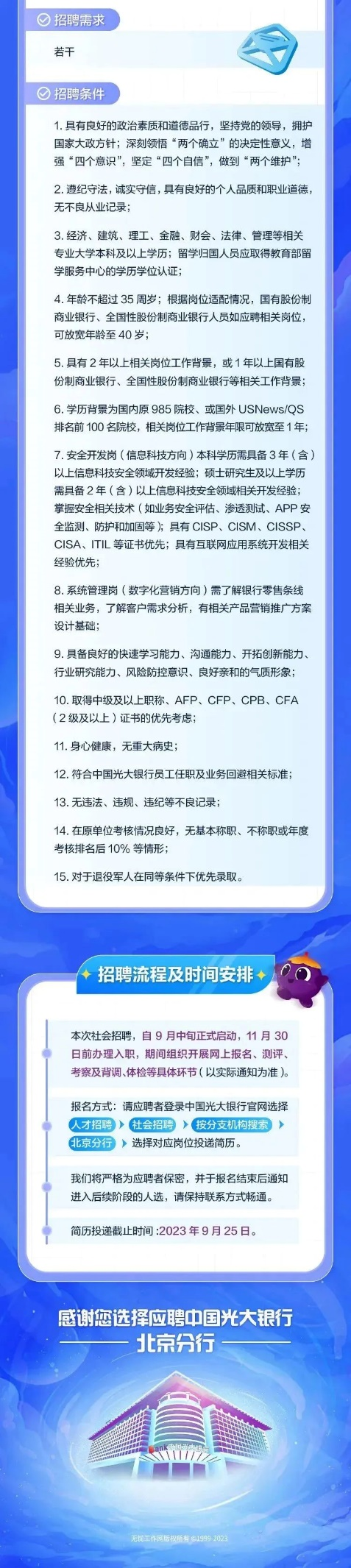 【聚焦优岗】第八十二期 中国光大银行北京分行2023年社会招聘启事