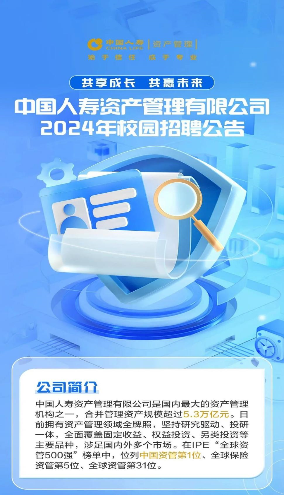 【聚焦优岗】第八十八期 中国人寿资产公司2024年度校园招聘等你来投!