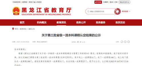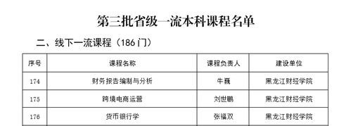 日前,黑龙江省教育厅公布了第三批黑龙江省一流本科课程认定结果,我校“财务报告编制与分析、跨境电商运营、货币银行学”3门课程被认定为省级线下一流本科课程,至此我校省级一流本科课程数量达5门,课程建设质量又有新提升。