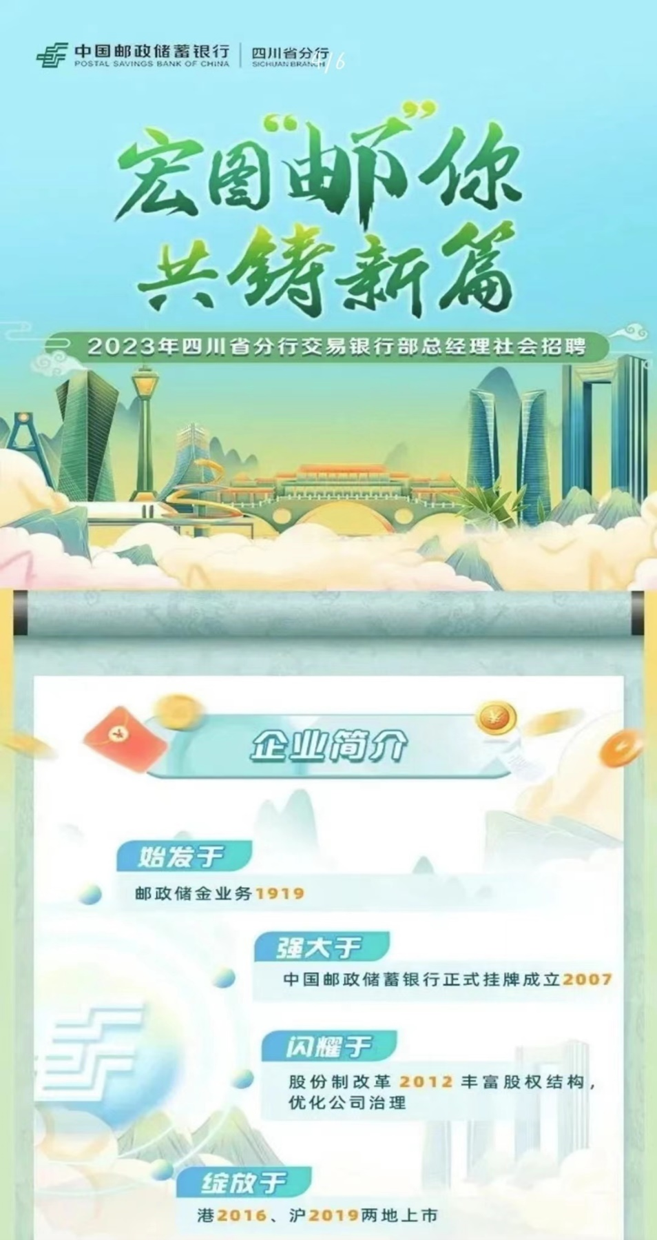 【聚焦优岗】第九十六期 中国邮政储蓄银行四川省分行交易银行部总经理社会招聘