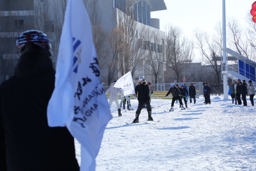 开幕式上,来自体育队的同学们带来了精彩的滑雪表演,他们脚踩双板、手持雪杖,在雪面上驰骋,展现了当代大学生的体育精神风貌,赢得了现场师生们的阵阵掌声。