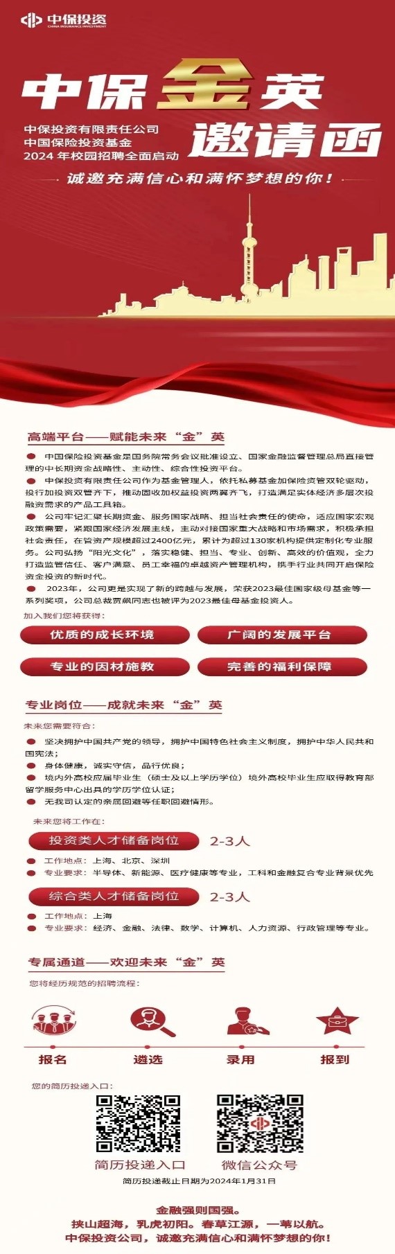 【聚焦优岗】第三百五十六期 中保投资2024年招聘公告