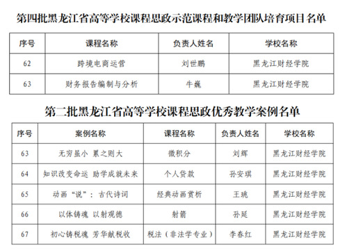 近日,省教育厅公布了黑龙江省高等学校第四批课程思政示范课程和教学团队培育项目、第二批课程思政优秀教学案例名单,我校2门课程荣获课程思政示范课程和教学团队、5项案例荣获课程思政优秀教学案例,优秀教学案例获评数量与东北林业大学并列全省高校榜首。