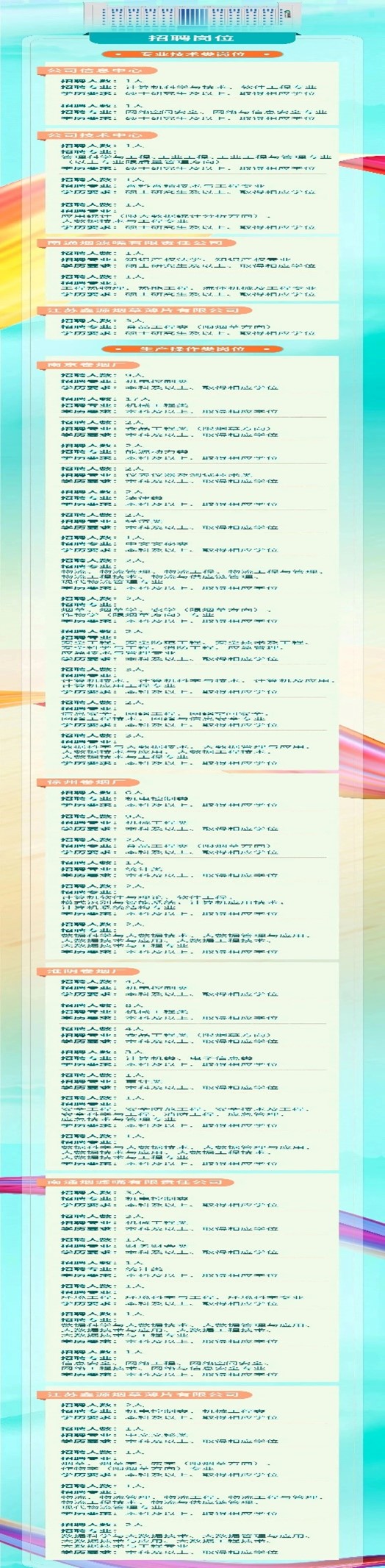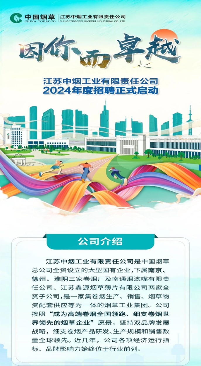 【聚焦优岗】第三百六十三期 中国烟草江苏中烟2024年度招聘123人!附职位信息!报名截至3月23日!
