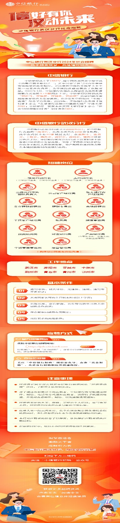 【聚焦优岗】第三百六十六期 中信银行武汉分行2024年社会招聘火热进行中!