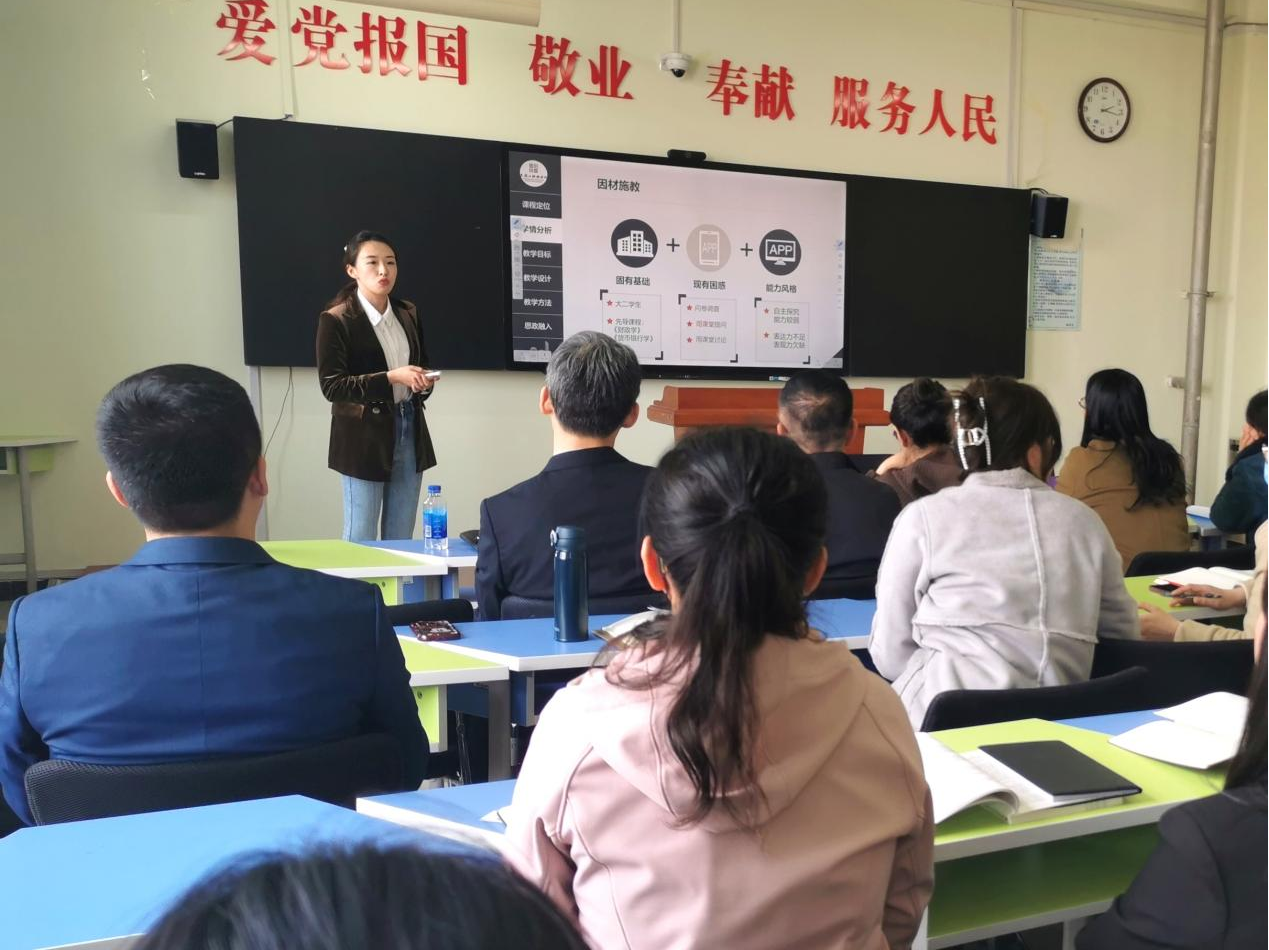 会议最后,教师代表王莹进行了课程教学创新分享,向老师们展示了从说课到授课的课堂教学创新实践,以其扎实的教学基本功、创新的教学设计、幽默的教学语言博得阵阵喝彩。王莹教师的课程分享展现了一名高校教师的职业价值和成就感,能够激发其他教师的学习驱动力,以点带面,对整体教师队伍教学能力的提升具有积极意义。
