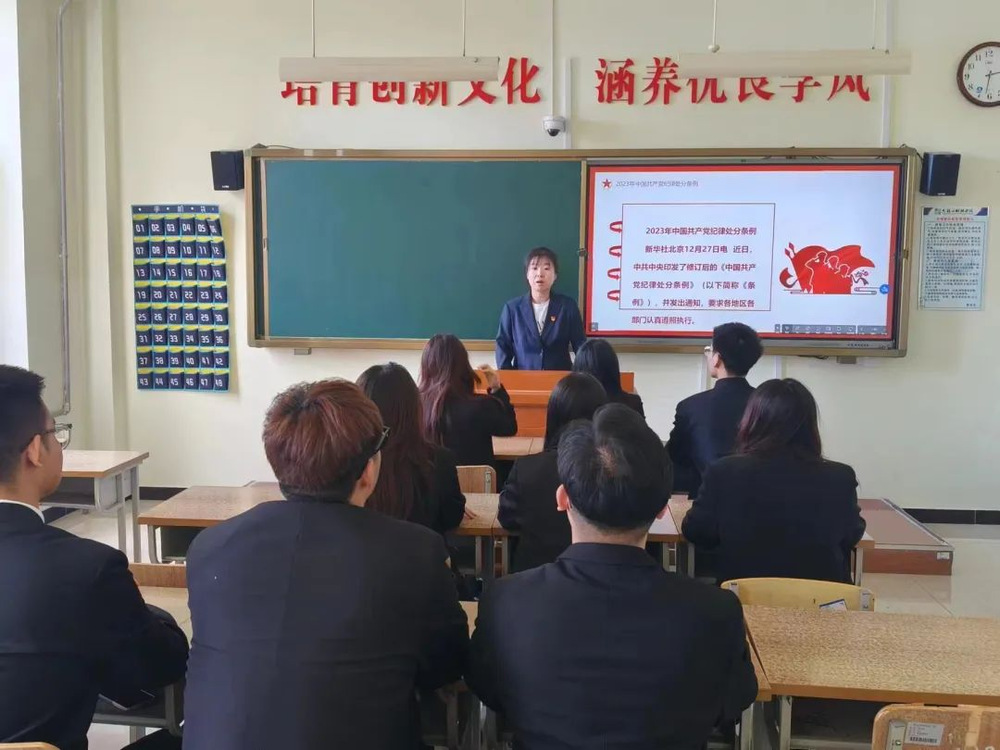 党课上,各党支部书记对《中国共产党纪律处分条例》主要内容进行深刻解读,并以推进学院事业高质量发展为牵引,从“为什么要开展党纪学习教育、怎么样去开展党纪学习教育、我们如何开展党纪学习教育”三个方面展开,强调全体学生党员同志要强化认识,开展党纪学习教育,提升党性;要落实标准,开展党纪学习教育,规范有矩;要践行发展,开展党纪学习教育,提振质量,并结合具体案例,要求全体学生党员履好职、尽好责、守好纪,以主人翁姿态投身学院高质量发展。