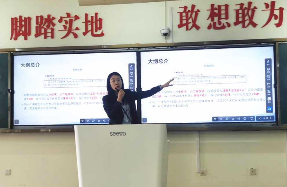 会议第二个环节,由保险教研室主任刘佳宇老师,将学院自检自查中发现的大纲编写共性问题向全体教师做了讲解,要求全体教师逐一核对自己大纲的问题,保证大纲编写的规范性。