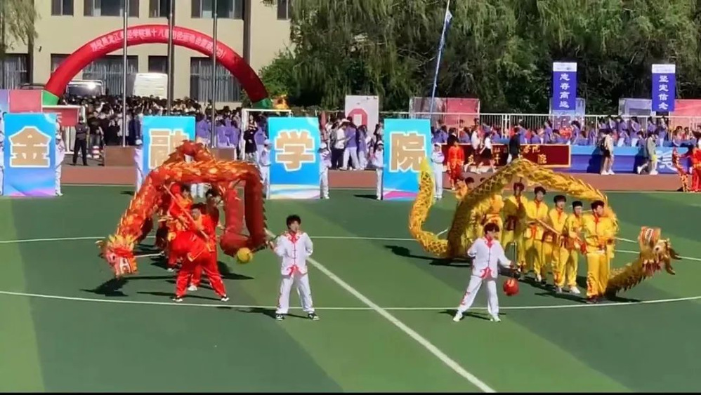 百余名金融学子随着音乐动作徐徐而来、气势磅礴彰显了青春风貌和青春热情。