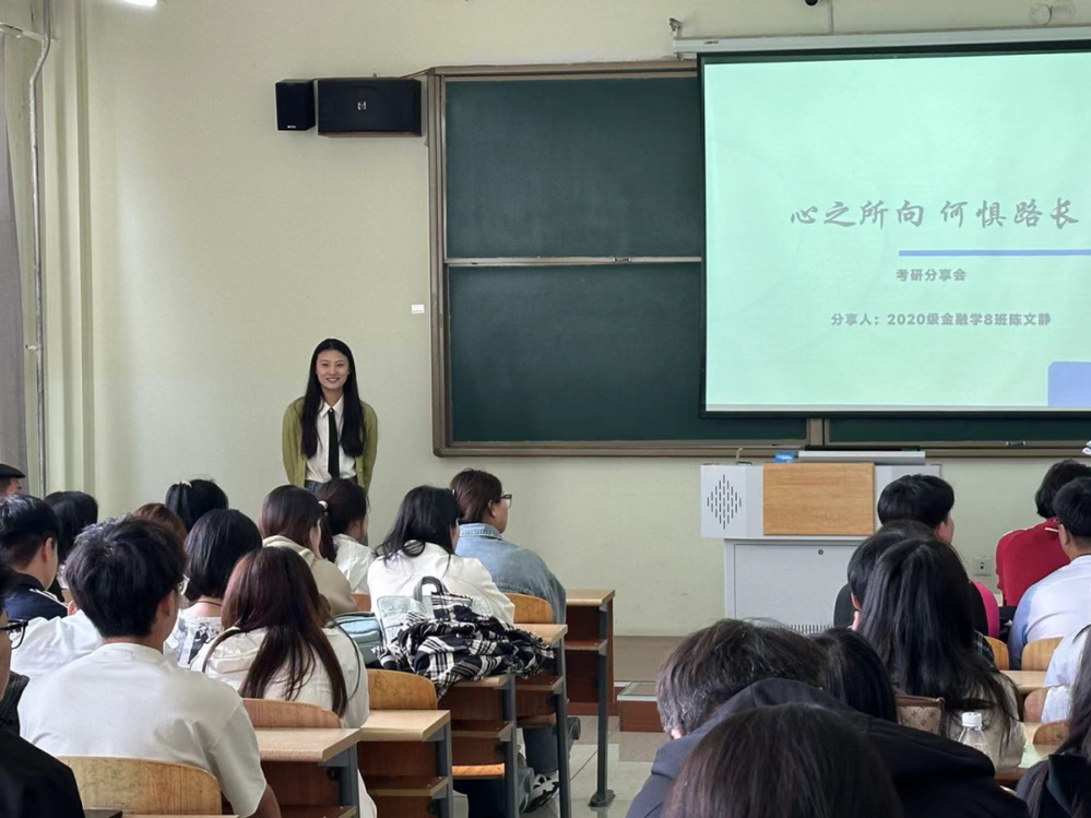 我院于2024年5月29日下午13时在尚学楼412教室开展考研分享会,由2020级金融学优秀毕业生陈文静为我院学生提供考研分享。