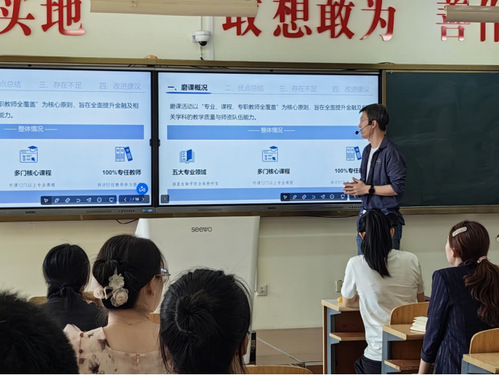 为了更好地达到预期目标,金融学院于6月28日下午开展了阶段总结活动。郭强院长从活动开展概况、教学中优点、存在问题、改进建议四个方面做了全面阐述。他指出:在本轮教学能力提升活动中教师们态度认真,准备充分,讲授娴熟,注重团队协作、资源共享。但同时也存在着思政融入不足、板书设计不规范、互动不够、内容延展不足等问题,据此从加强思政融入、提升板书与PPT设计;增加互动、提升教师技能、优化教学设计;利用多媒体、丰富内容;强化团队建设、持续改进、紧跟学生需求等方面提出改进建议。