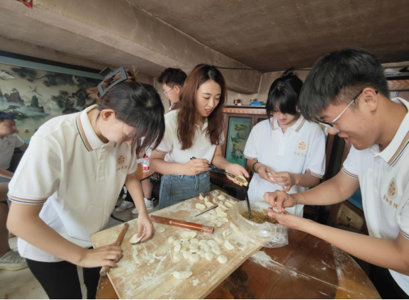 在新时代文明实践中心推广宣传普通话,并将普通话带到明水县书法协会,与学生们开展推普活动、书画指导、文化交流,并在最后为孩子们献上一份爱心,发放书包;在明水县文创中心了解陶瓷、剪纸、书画、篆刻、玉米叶编织、面塑等文化创意作品及文旅发展情况,并通过实地走访“AAA级旅游景区”双兴镇双利村文旅小镇,深入了解了明水县的乡村文旅、风俗习惯、民俗活动等,感受明水文化的独特魅力,让学生坚定传承和弘扬中华优秀传统文化的信念和决心。