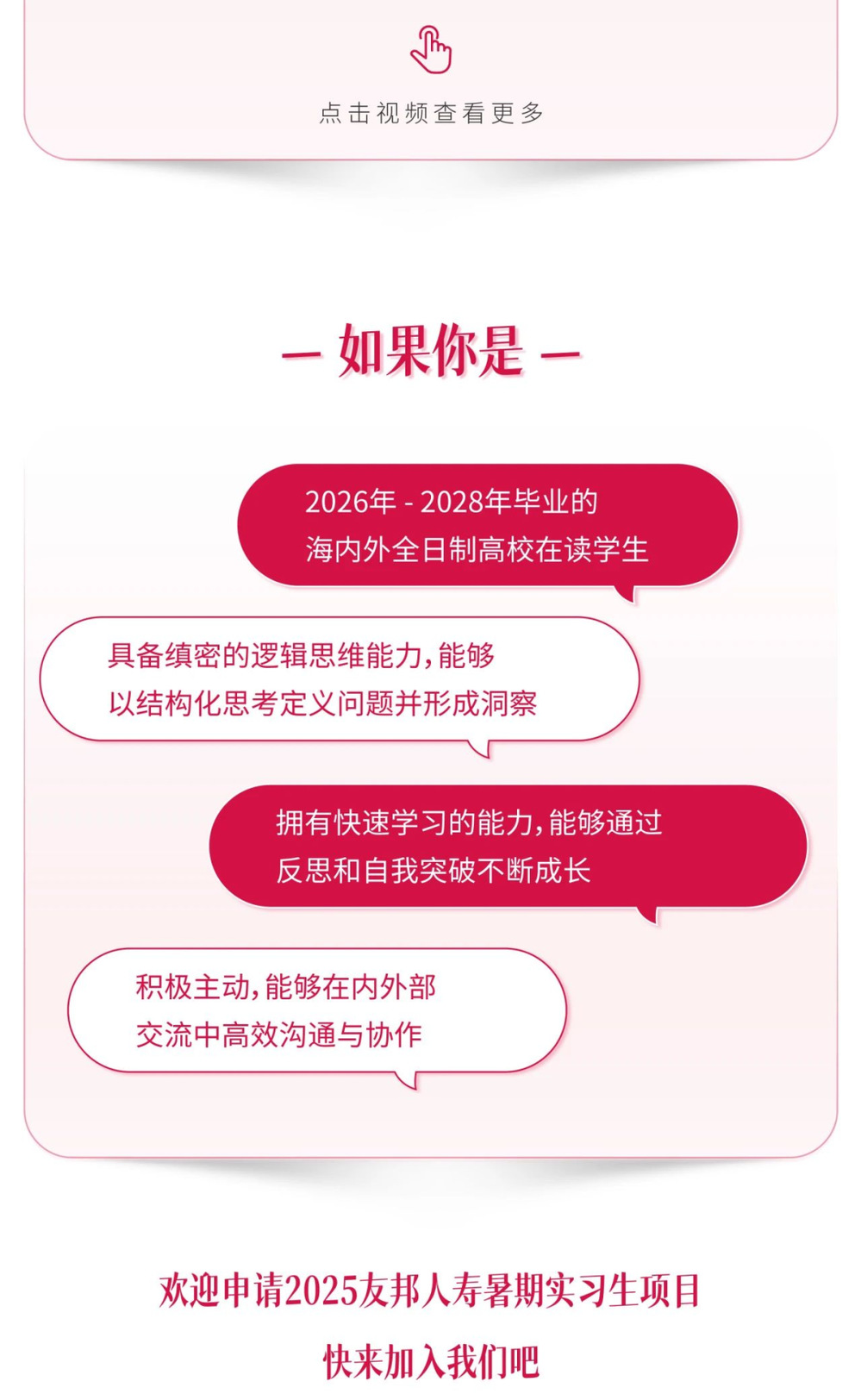 友邦人寿2025暑期实习生招募计划启动啦