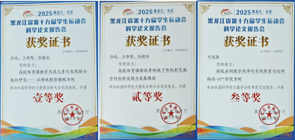 黑龙江省学生运动会科学论文报告会是省内学校体育科研成果交流的重要平台,是对近年来黑龙江省学校体育科研成果的一次全面检阅和集中展示,是强化我省学校体育科研、培养高水平学术人才、提高师资队伍素质、推进学校体育事业发展的重要举措。此次成果彰显了学校近年来在体育学科建设和科研工作上的显著成效。长期以来,我校高度重视科研与教学实践相结合,鼓励教师和学生积极开展科学研究,产出了一批有价值的研究成果。入选的论文凝聚了我校教师的心血和智慧,也体现了他们将理论研究与实践应用相结合的创新能力。