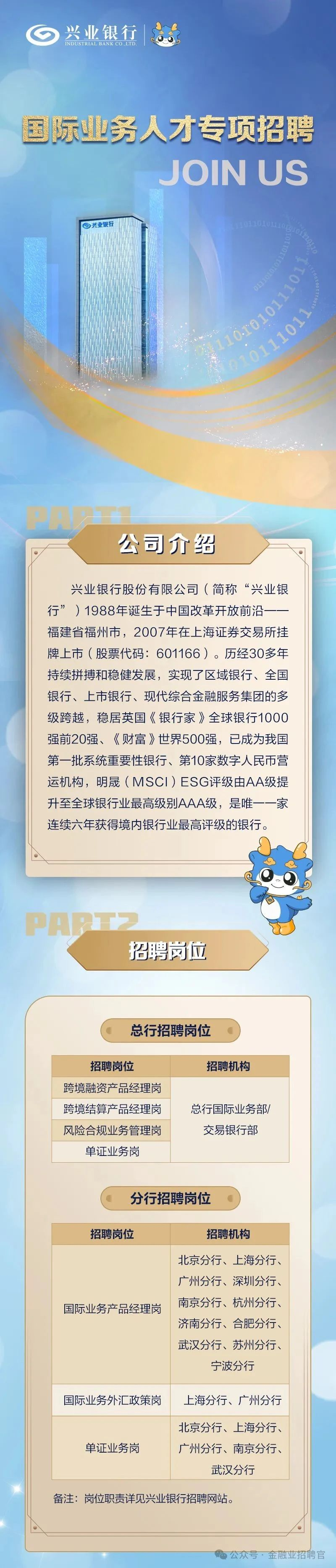 【聚焦优岗】第六百期 社招| 兴业银行国际业务人才专项招聘