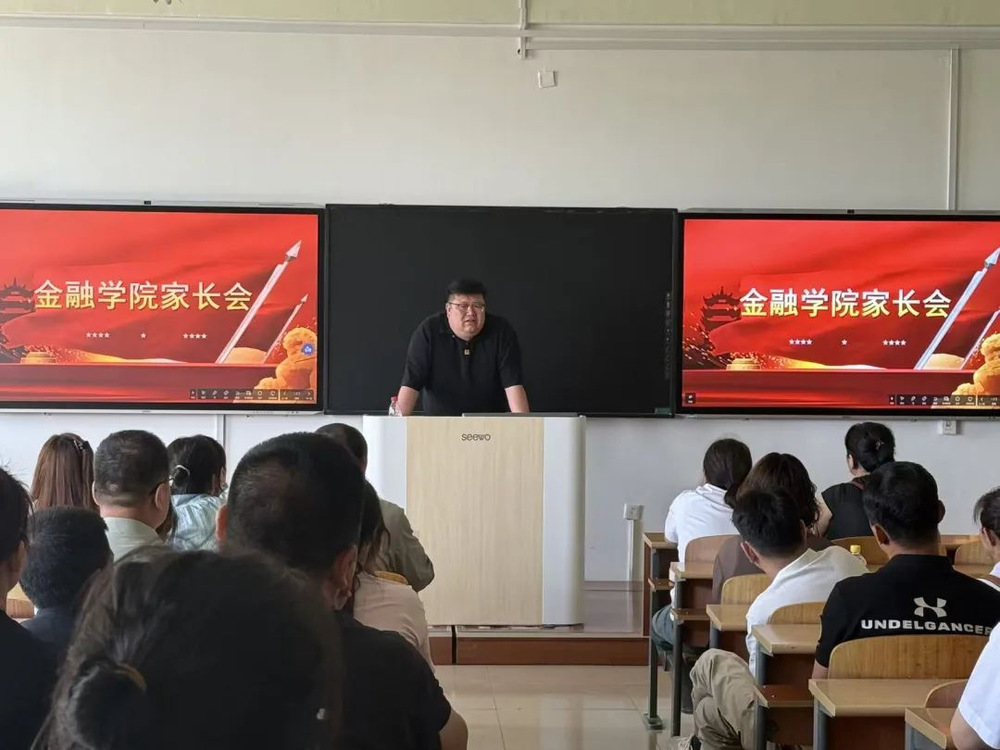 会上,董博老师全面介绍了专业培养方案、实践教学体系等内容,并特别提出,辅导员将及时关注学生的日常动态与心理健康状况。董博老师强调这次开家长会的目的,是为了沟通,重点是在家校沟通,欢迎家长随时联系反馈;特别提醒家长叮嘱学生提高反诈骗意识,学院也会开展专题教育。这场家长会犹如一盏明灯,照亮新生求学路。让我们携手培育希望幼苗,期待其在金融学院沃土中绽放光芒。