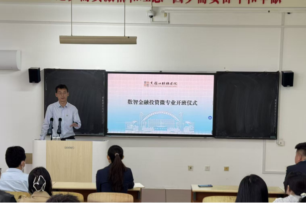 2025年9月17日下午,金融学院在尚学楼424举行了数智金融微专业开班仪式。仪式由副院长张福双主持,院长郭强、副院长刘佳宇、江海证券世贸大道营业部总经理岳闻、教师辅导员代表及微专业全体学生共同参会,开启金融人才培养新征程。