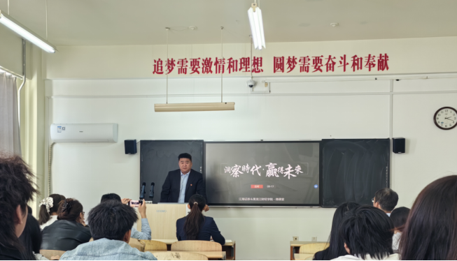 江海证券世贸大道营业部总经理岳闻作为企业代表发言,对学院数智金融微专业的设立给予高度认可。他结合行业实践,深入分析互联网金融发展的前沿趋势,解读数字技术对金融业态的重塑作用,并围绕财经自媒体的内容创作、传播逻辑等热门话题分享实战经验,为同学们带来行业一线视角,拓宽了学术视野。