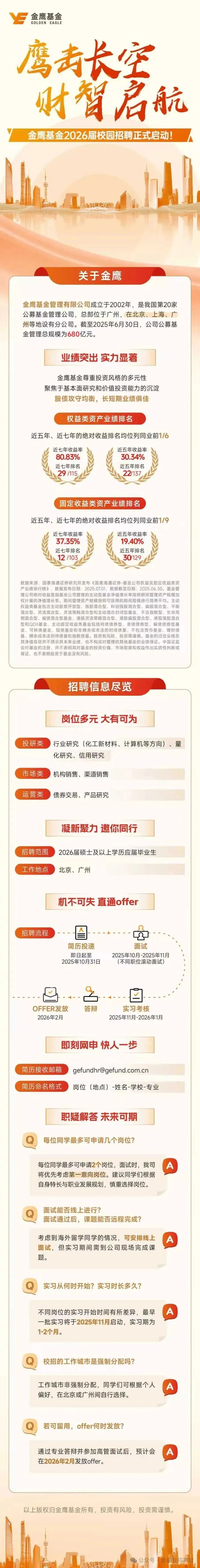 校招| 金鹰基金最新招聘(北京/广州)UMN