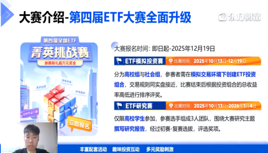 培训伊始,付洺昊聚焦比赛核心,系统讲解“第四届ETF菁英挑战赛”的赛程安排、操作规则及评分标准,结合东方财富平台操作要点,拆解ETF投资策略设计、组合调整等关键环节,帮助学子快速掌握比赛核心逻辑。随后,于晓宇老师围绕证券投资实战展开教学,结合实时市场案例解析ETF技术分析方法,重点讲解“上升通道”等实用分析工具的应用场景与操作技巧,引导学子将课堂所学理论与市场实践深度融合。