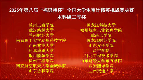 由中国审计学会审计教育分会主办、南京审计大学国家审计学院承办的2025年第八届“福思特杯”全国大学生审计精英挑战赛于近日圆满落幕。本届大赛吸引了全国233所本科院校的精英学子同台竞技,竞争异常激烈。