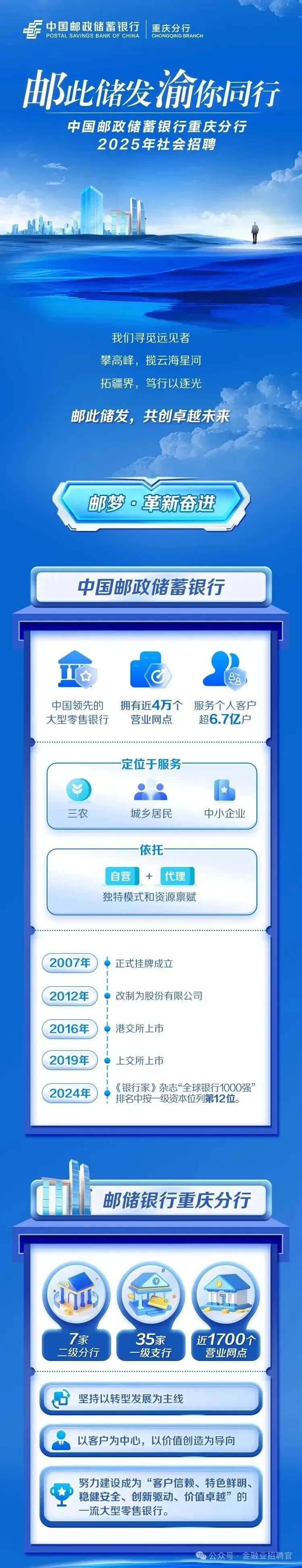 社招|中国邮政储蓄银行重庆分行2025年社会招聘(重庆)
