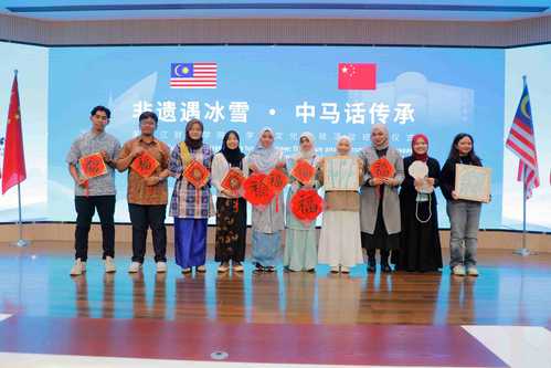 刘阳从“非遗传承架起精神纽带、冰雪风情塑造文化名片、城市研学展现尔滨活力、校际互动筑牢合作根基”四个方面对研学活动做总结。她指出,此次研学活动的圆满落幕,不是交流的终点,而是中马教育文化合作的新起点。活动以文化为纽带,实现了“双向奔赴、互利共赢”的良好效果,既让中国优秀的传统文化走向国际,也让我们感受到了马来西亚多元文化的独特韵味。未来,学校将持续以开放包容的胸襟、精益求精的态度,深耕国际文化交流,不断优化研学体系,让跨越国界的友谊之桥更加坚固,让文明互鉴的成果惠及更多中外师生。祝愿中马友谊之树常青,文明互鉴之花常开,校际合作之路行稳致远、繁花似锦。