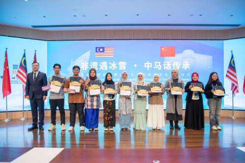 玛拉工艺大学学生代表法拉·阿莉亚·艾哈迈德汇报了研学体会。她表示,此次研学不仅仅是一次学术访问,也是一场意义深远的文化对话,更是架起中马两国相互理解的坚实桥梁。这段研学经历令人难以忘怀,大家走进美丽的伏尔加庄园,沉浸式体验雪雕、漆艺、射箭、书法等特色活动,在亲手实践中触摸中华文化的深厚底蕴。衷心希望以此次研学为契机,让更多中马青年携手同行,让两国文化交流的友谊之花常开不败。